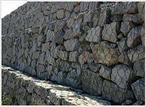 雷諾護墊也叫石籠護墊,格賓護墊,是指由機編雙絞合六邊形金屬網面構成的厚度遠小于長度和寬度的墊形工程構件。雷諾護墊中裝入塊石等填充料后連接成一體,成為主要用于水利堤防、岸坡、海漫等的防沖刷結構,具有柔性、對地基適應性的優點。
