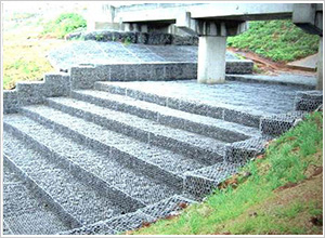 雷諾護墊是厚度在0.17-0.3m的網箱結構,在現場用于裝填石頭。主要用作河道、岸坡、路基邊坡護坡結構。既可防止河岸遭水流、風浪侵襲而破壞,又實現了水體與坡下土體間的自然對流交換功能,達到生態平衡。坡上植綠可增添景觀、綠化效果。