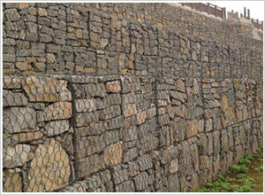 (4)鋅-5%鋁-混合稀土合金鋼絲包塑:在鋅-5%鋁-混合稀土合金鋼絲的表面包一層PVC保護層,再編織成各種規格的六角網。這層PVC保護層將會大大增加在高污染環境中的保護,并且通過不同顏色的選擇,使其能和周圍環境融合。