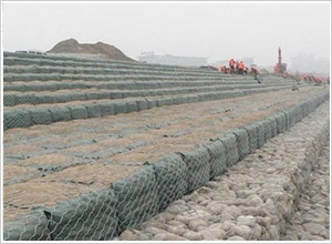 (3)鍍鋅鋼絲包塑:優質低碳鋼絲,在鋼絲的表面包一層PVC或PE保護層,再編織成各種規格的石籠網。這層保護層將會大大增加在高污染環境中的保護,并且通過不同顏色的選擇,使其能和周圍環境融合。